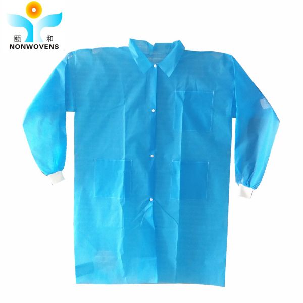 35gsm Disposable Lab Coat PP Non Woven Spunbond Laboratory Cleaning Room Clothes Images |