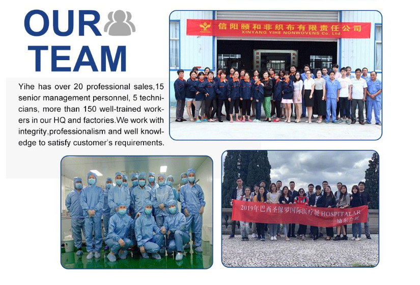 XINYANG YIHE NON-WOVEN CO.,LTD. is a professional large-scale manufacturer of all types of non-woven products, which is headquartered in Xixian, Henan province. Our main products include non-woven fabrics, ss woven, sms non-woven, non-woven protective clothing, lab coats, gowns and related products. Established in 2008, Yihe's products are manufactured in accordance with the international quality standard ISO9001 and ISO13485.